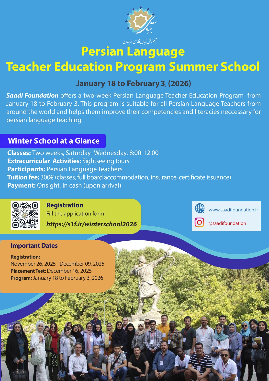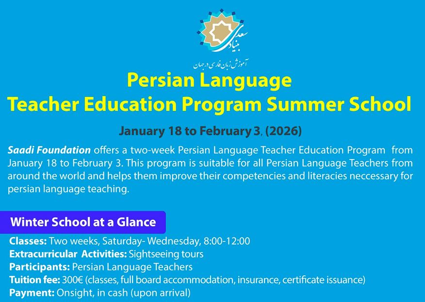 Saadi Foundation offers new Persian Language Teacher Education Program, for more information please download the attached file.